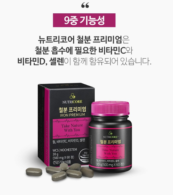 뉴트리코어 철분 프리미엄은 고품질의 철분 성분을 함유하고 있어 체내 흡수율이 높고, 부작용은 최소화한 제품입니다. 이 제품의 특징과 장점에 대해 자세히 알아보겠습니다.