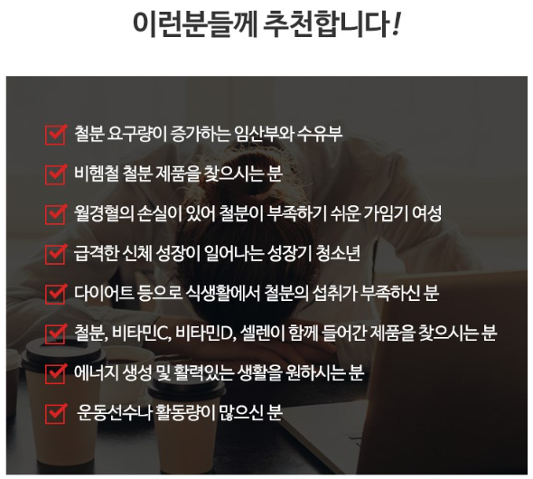 2. 여성: 월경으로 인한 철분 손실이 있는 여성들에게 적합합니다.