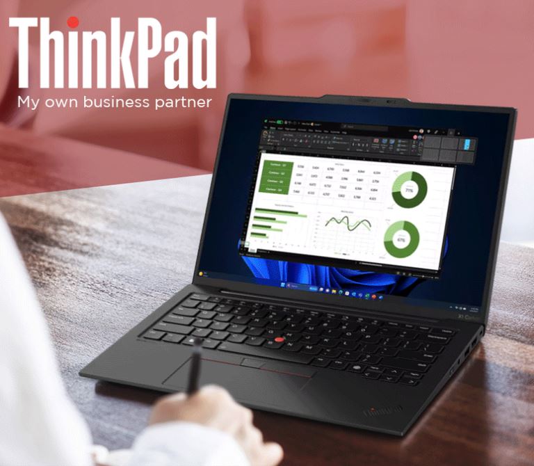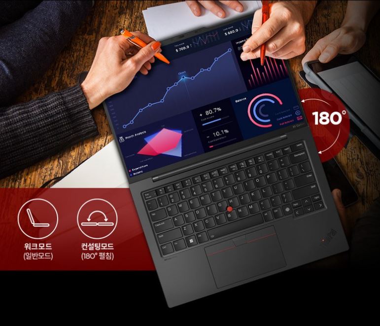 4. Lenovo ThinkPad X1 Carbon 2024: 무게 1.1kg, 두께 14.5mm로 휴대성이 최상급입니다.