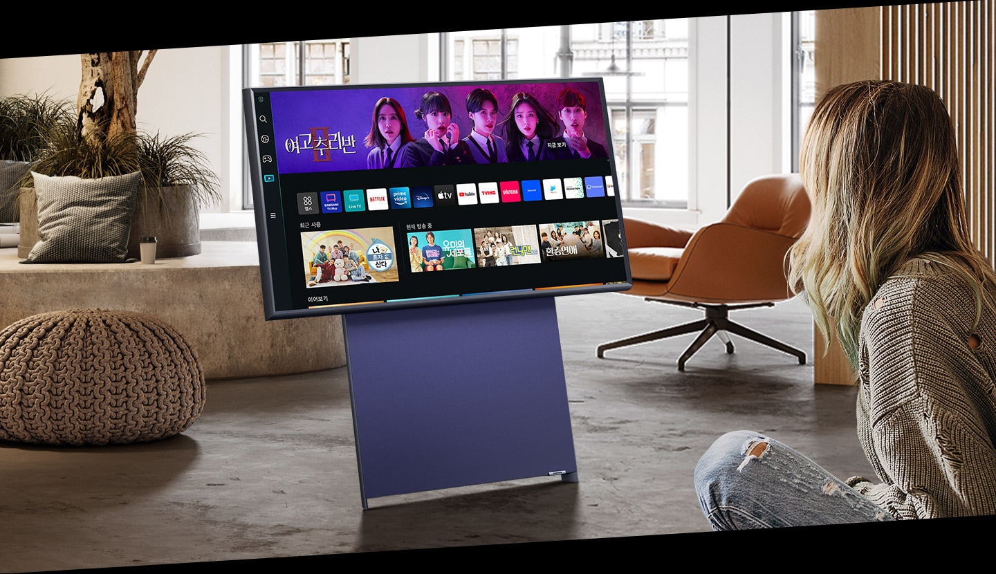 The Sero TV는 스마트 기능도 충실해요. 타이젠 OS를 탑재해서 다양한 앱을 설치하고 사용할 수 있어요. 넷플릭스, 유튜브 같은 스트리밍 서비스는 물론이고, 삼성 스마트 싱스 앱을 통해 집 안의 다른 스마트 기기들과도 연동할 수 있죠.